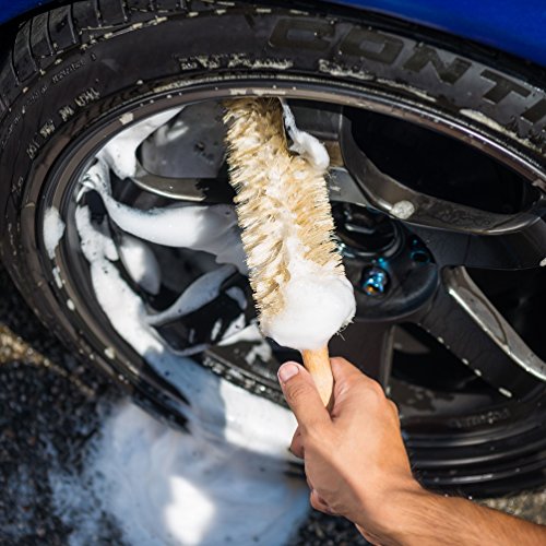 -. Feature : Great for tight and hard to reach places / Thick flexible and bendable bristles / Easily cleans deep inside wheels, exhaust tips, engine bays, and more / Full length - 17", brush length - 12" / Handle is made out of 100% environmentally friendly sustainable treated wood