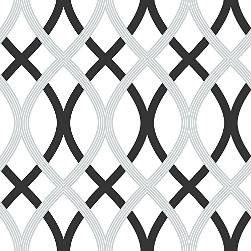 Wall Pops NU1658 Lattice Peel and Stick Wallpaper, Black/Silver