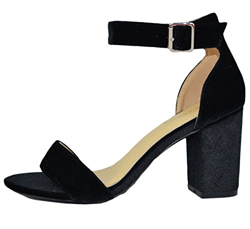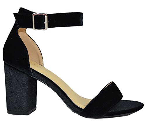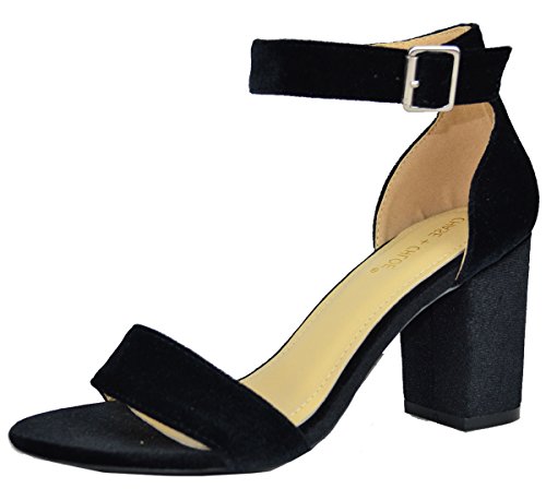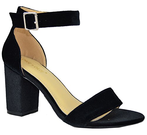 Chase Chloe Women's Velvet Stacked Chunky Heel Strappy Platform Sandal