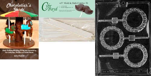 Cybrtrayd 'Plain Round Fancy Border Lolly' Miscellaneous Chocolate Candy Mold with 50 4.5-Inch Lollipop Sticks and Chocolatier's Guide