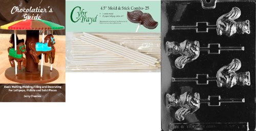 Cybrtrayd 45St25Bk-A091 'Squirrel Lolly' Animal Chocolate Candy Mold with 25 4.5-Inch Lollipop Sticks and Chocolatier's Guide