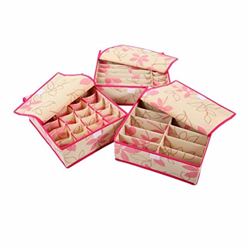 -. Title : Micy Drawer Dividers Closet Organizers Bra Underwear Storage Boxes 3 Set- Pink Leaves