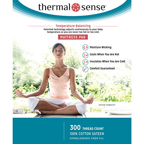 -. Binding : Misc. -. Brand : ThermalSense -. Feature : Revolutionary and patented technology / Adds a layer of comfort to your mattress that adjusts continuously to your body temperature so you are never too hot or too cold / Hypoallergenic fiber fill / Care instructions: machine wash warm, normal cycle, only non-chlorine bleach when needed; tumble dry low; do not iron -. Label : ThermalSense -. Manufacturer : ThermalSense -. Model : 30245ATC-P -. ProductGroup : Home -. ProductTypeName : HOME_BED_AND_BATH -. Publisher : ThermalSense -. Studio : ThermalSense -. Title : ThermalSense Temperature Balancing Mattress Pad