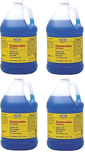 (Case of 4) Chlorhexidine 2% for Horses & Dogs, One Gallon. Chlorhexidine 2% solution, antibacterial aqueous cleaning solution to be applied on superficial cuts abrasions or insect stings, for use on horses and dogs, effective against gram-positive and gram-negative bacteria, provides residual effect up to 2 days, made in the USA.Feature