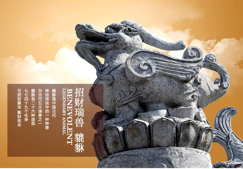 貔貅是一种祥瑞神兽,以金银财宝为食,放置于家宅之中,可招财旺财。 【招财旺财】 貔貅纳食四方之财。摆放貔貅可令家运好转、好运加强!古贤认为,命是注定的,但运程可以改变,故民间有"一摸貔 貅运程旺盛,再摸貔貅财运滚滚,三摸貔貅平步青云 "的美好祝愿。 金银元宝:摆放元宝可助益主人事业顺利、招财、旺财、财源滚滚、摆放在貔貅脚下可令吸财功效更强! 【摆放】 貔貅放置在住宅或办公室的财位,门口或窗台上。嘴巴朝外,切忌朝内:不要头冲正门与镜子,不要对着床! 1.貔貅神兽能帮主人招取钱财,咬住钱财,只进不出,因此是很好的招财、守财的神兽。 2.貔貅自古以来一种保护主人的神兽,具有强大的威猛招财灵性,招取财源并进一步守住财库。 3.貔貅更是招偏财神兽,只要将貔貅正面朝外,即可解煞,加以改变磁场,带来好运并让你的财源滚滚而来。开光后貔貅的摆放,貔貅的嘴一定要斜对门,如家居摆放不方便,也可对窗外,摆放的高度不能高于人的头部。貔貅摆放好了不 要经常的搬动。不要冲厕所。不要冲镜子,因为镜子会产生光煞貔貅忌讳。不要对着床,这样会对自己不利。貔貅很容易供养的 ,每天诚心供奉檀香或一杯清水,当财运沈寂或不顺时,可摇动铜铃,意即摇醒财神,让您的财源滚滚。 一对的貔貅请回家后按男左女右的方法摆放,可摆在财位上,也可摆在客厅、门口或玄关,貔貅头朝家门外、窗外、或者阳台外 ,再把元宝放在貔貅的嘴下,在貔貅前面放一杯水,水杯的高度不可高过貔貅,水要常换。