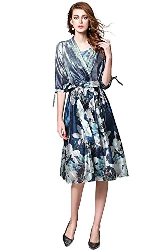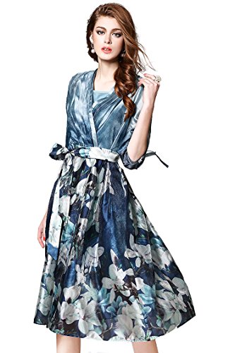 Title : Joy EnvyLand Women Two Pieces Surplice V-neck Tunic Flower Prom Party Midi Dress
