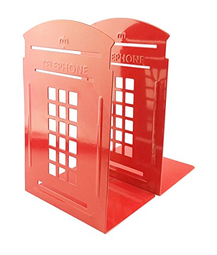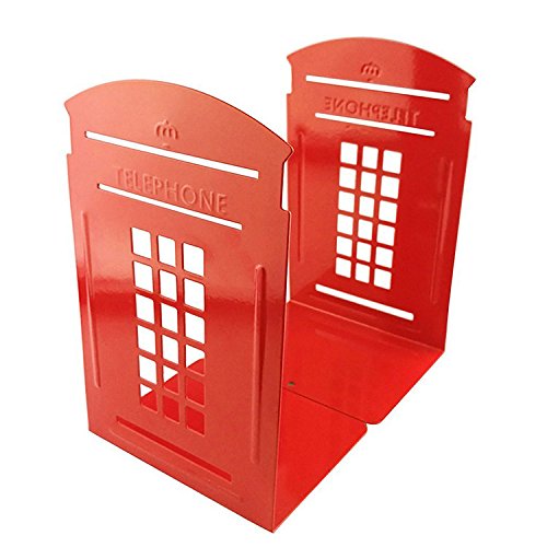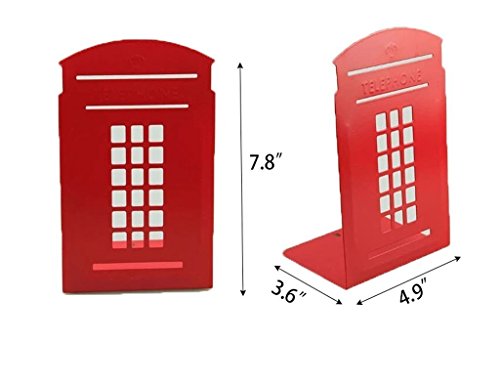TOBSON Creative Telephone Booth Metal Nonskid Bookends Book End Book Organizer Decoration for Library,School,Office,Desk Study Gift.A Pairs(Red)