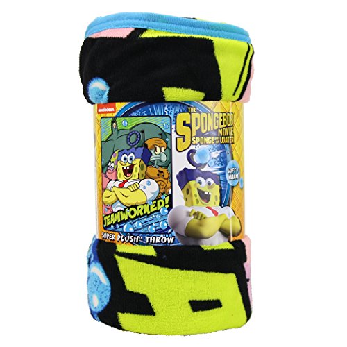 Kids Super Plush Sherpa Throw Blanket, 46x50-Inch (Spongebob Squarepants "Teamworked")
