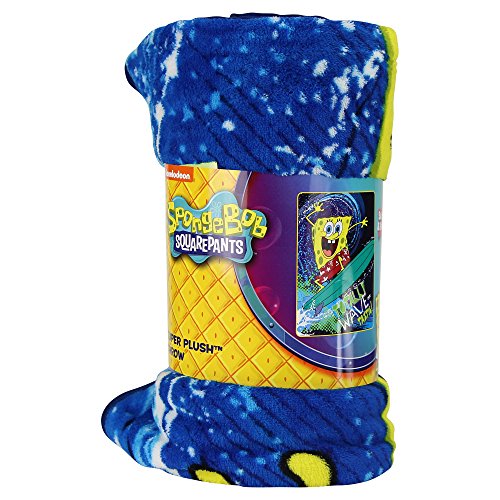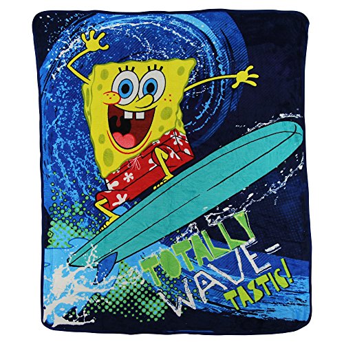 Kids Super Plush Sherpa Throw Blanket, 46x50-Inch (Spongebob "Wavetastic")