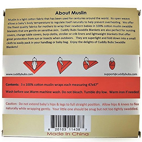 -. Title : Muslin Swaddle Blankets Premium 100% Cotton Pack of 3 by Cuddly Bubs - Best Summer Swaddling Wraps 47x47" for Infant Boys & Girls Make Unique Gifts for New Babies & Baby Shower - Breathable Reusable Versatile Softer with Each Wash - Perfect Receiving Blankets