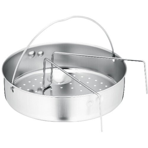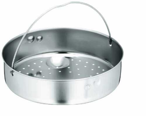 Studio : WMF Publisher : WMF Binding : Kitchen Product Description This WMF perforated insert set fits inside all WMF Perfect Plus pressure cookers, and features a durable stainless steel construction, and a footed base to give the insert a slight lift off the bottom of the cooker. The bottom has many perforations which makes this insert great steaming vegetables. Also included is a wire trivet that will elevate the insert above what is in the bottom of your pot. The collapsible handle on the insert allows for easy lifting from cooker. Measures 8-3/4-inch in diameter. Dishwasher safe.