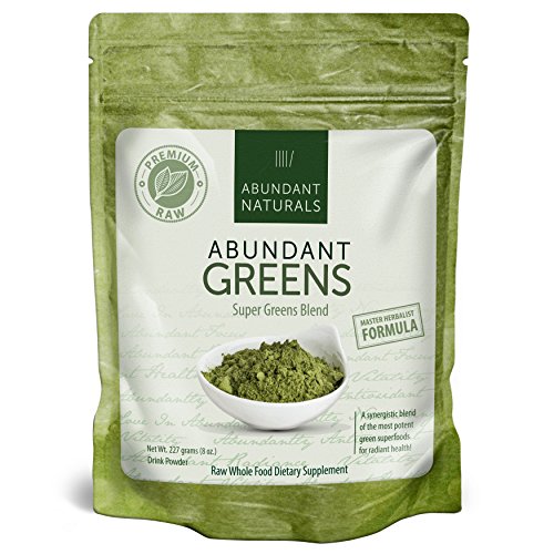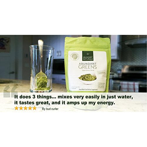 UNLIKE OTHER PRODUCTS, has a mild taste that does not overpower your smoothies, with just a hint of sweetness. Only 7 real food ingredients gives you the concentrated benefit of these organic supergreens: Wheatgrass, Moringa leaf, Alfalfa leaf juice, Chlorella, Spirulina, Barley Grass juice, with a subtle hint of whole stevia leaf. Enjoy radiant health and energy with Abundant Greens.