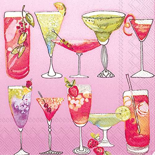 - Design features a variety of refreshing cocktails on a pink background