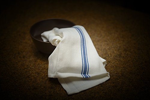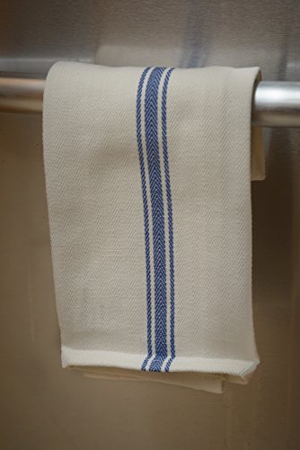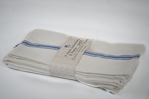 6 Pack Kitchen Dish Towels - Premium Grade 100% Cotton Towels (25" x 16") - Classic White Tea/Kitchen Towels with Blue Stripes