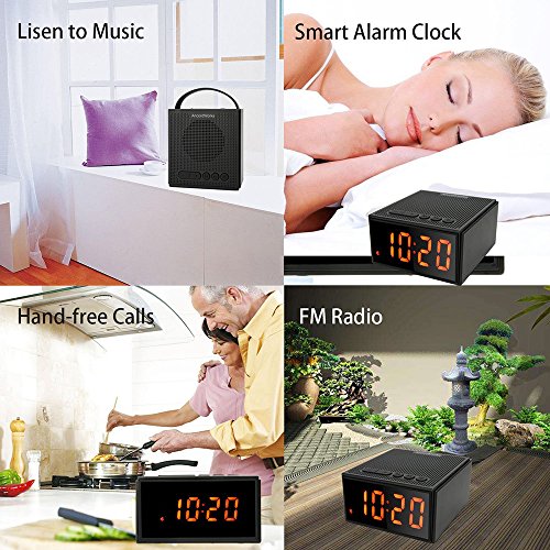 ★ OTHER INTEGRATED FEATURES - Our portable radio speaker has 3.5mm AUX jack to connect with phones, tablets, computer, etc; integrated clock with alarm, micro-SD card slot, mp3 player, rechargeable battery with 240 hours standby time, and hands free call with echo cancellation technology