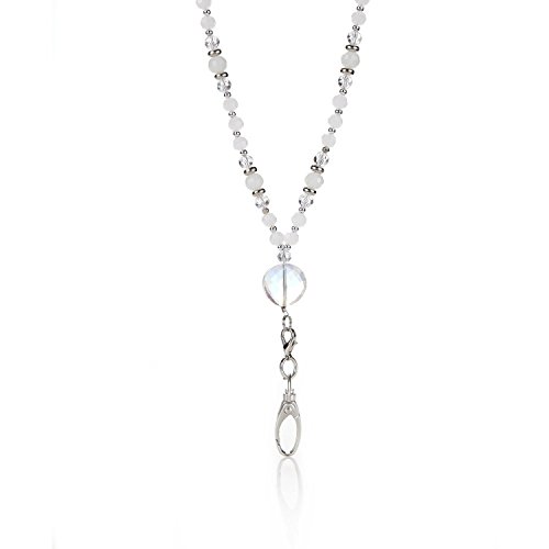 BooJeeBeads Moonbeam Fashion Lanyard - A White Beaded ID Name Badge Holder Necklace with Breakaway Safety Clasp