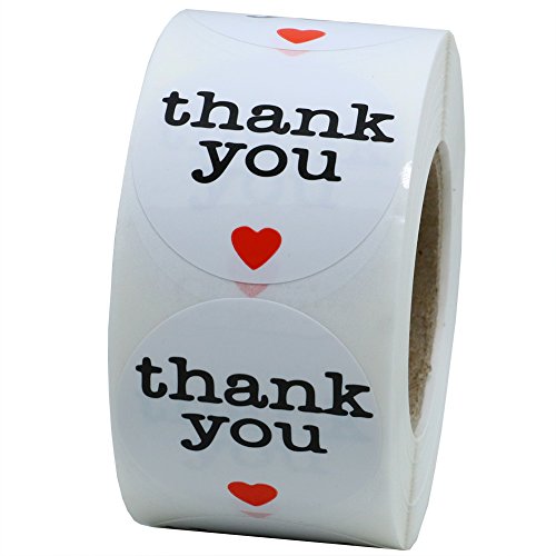 Hybsk(TM) 1.5" Inch Round Natural Paper Thank You Stickers with Red Heart 500 Adhesive Label Per Roll (1 ROLL)