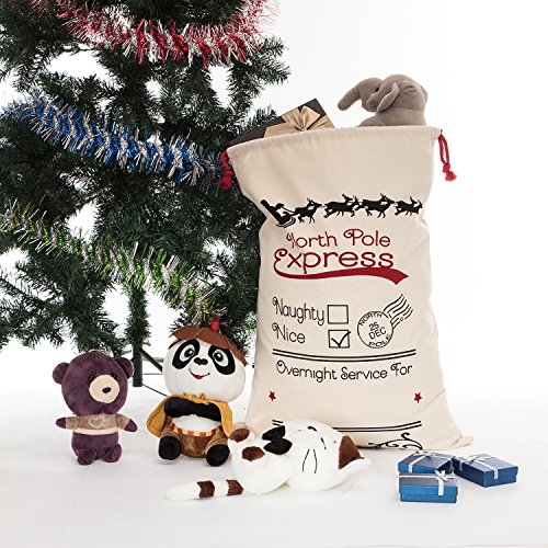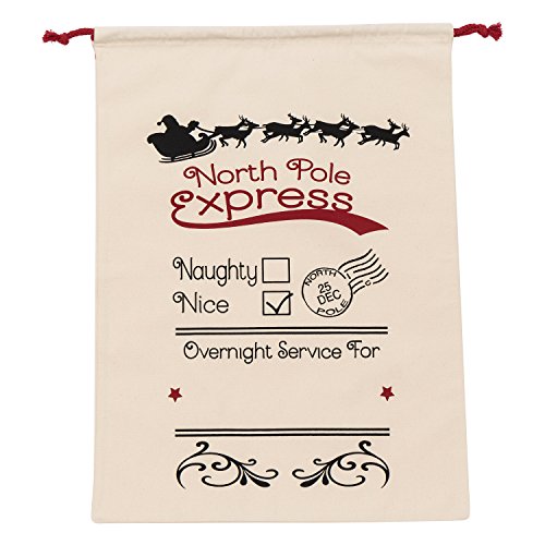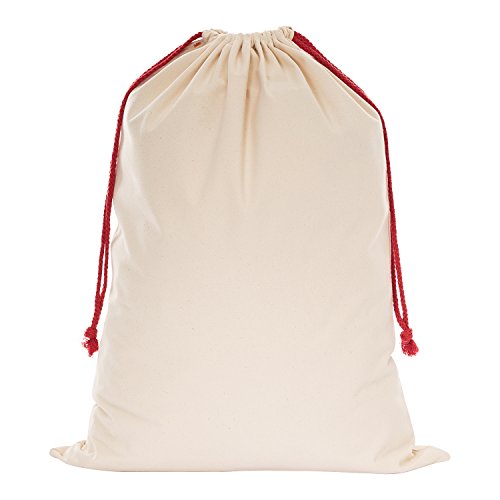 WeiVan Santa Sack for Kids on Christmas Day 27x19.7inch Santa Claus Bag Canvas Holiday Bag Beige