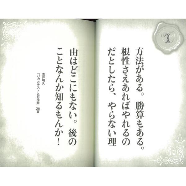 【商品説明】 定価(税込み):1,296円 値引き:10% OFF 私たちにふりかかってくる様々な試練、困難を乗り越える力をくれる珠玉のライトノベルの名言集。 バーゲンブック 新品 特価 格安 ビジネス 経済 スキル 名言 ライト ノベル |