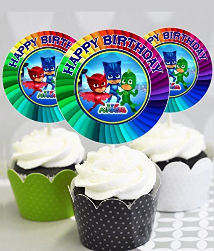 12 Happy Birthday PJ Masks Inspired Party Picks, Cupcake Picks, Cupcake Toppers #1