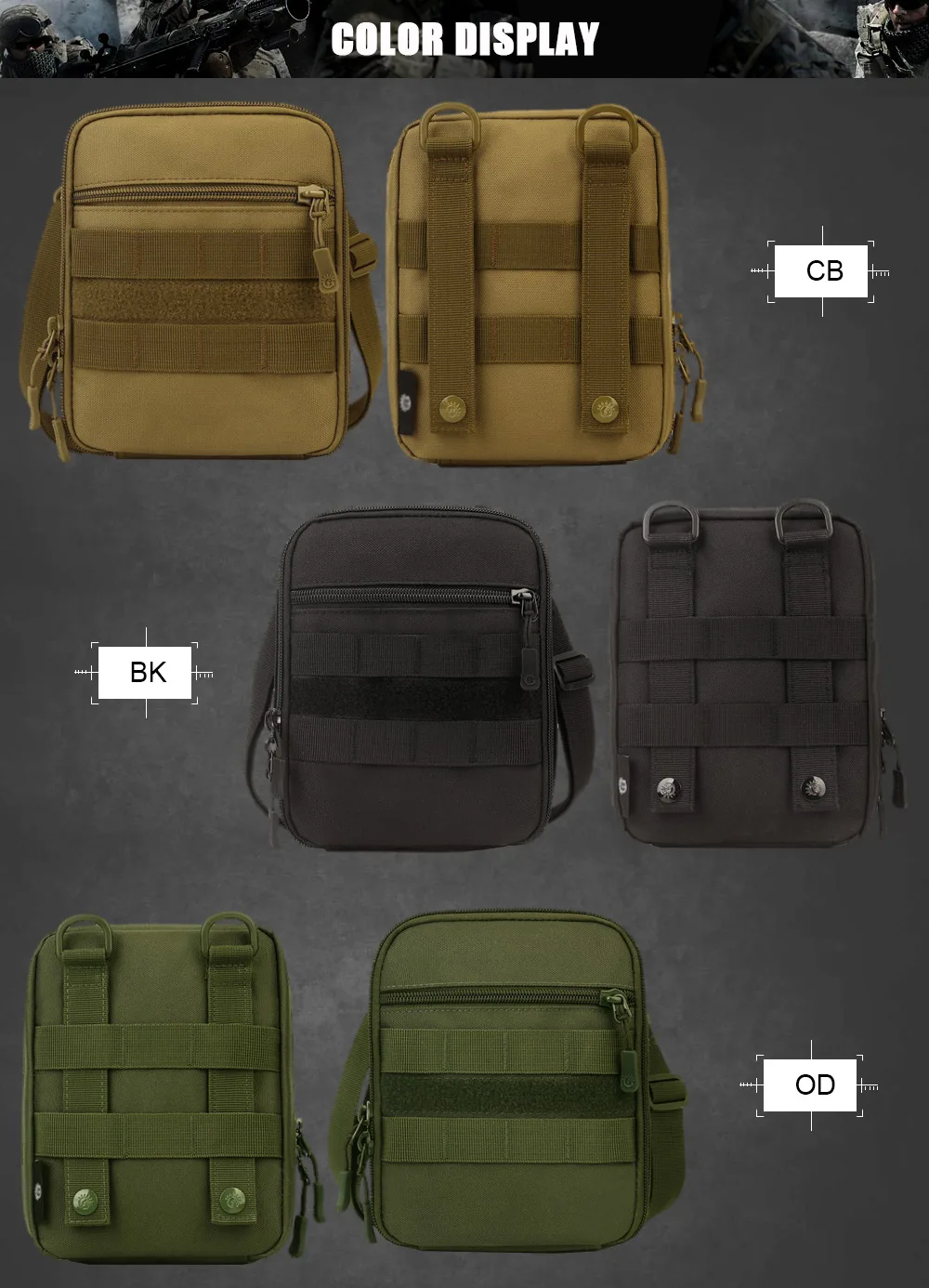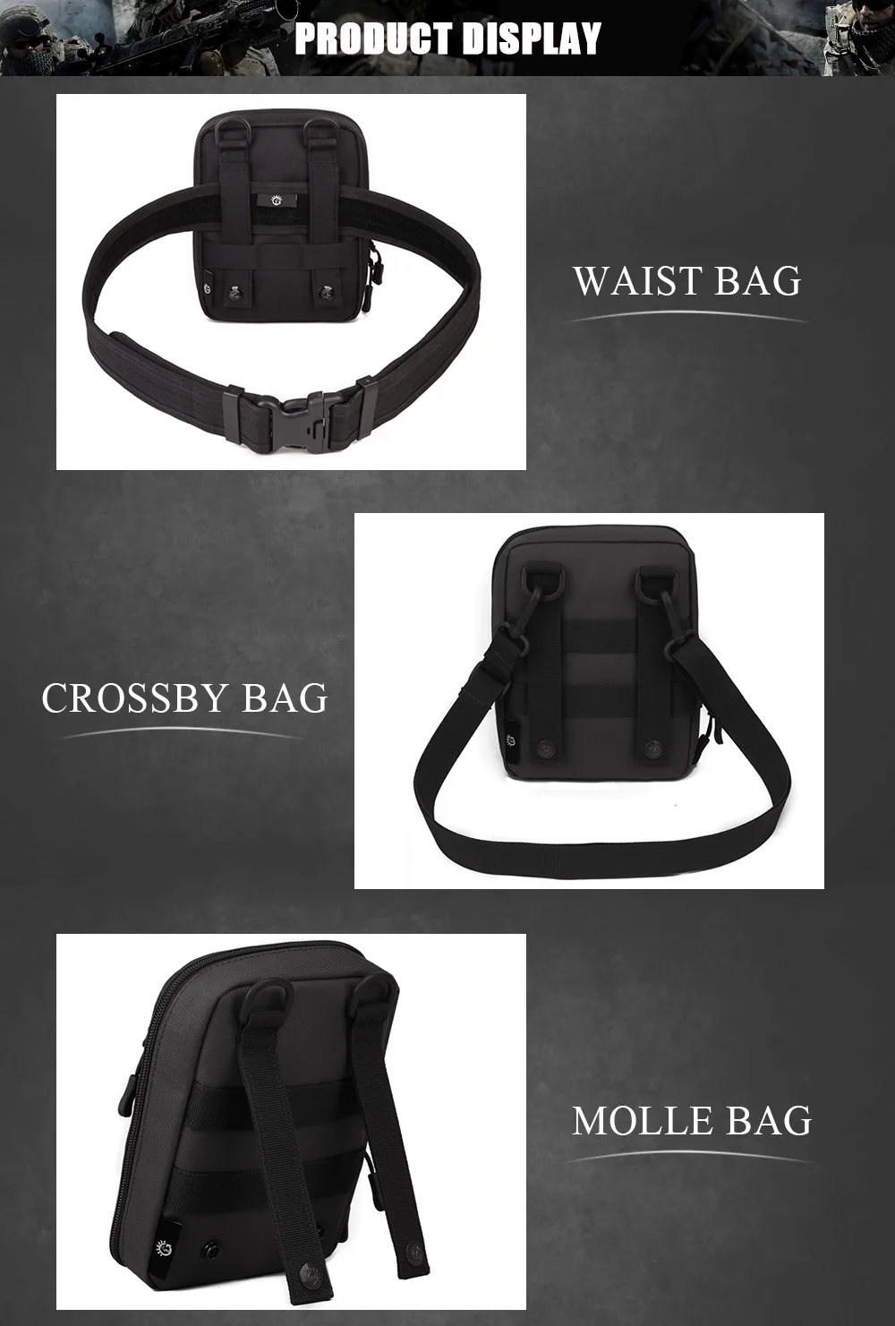 Function: Molle bag, Waist bag, Crossby bag