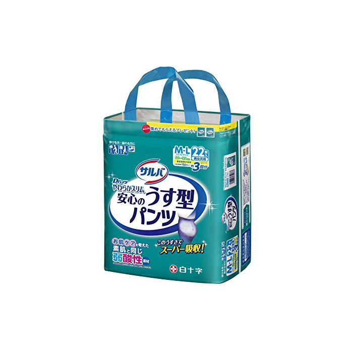 원본상품명: サルバ Dパンツ やわらかスリム うす型ス?パ? 男女共用 M-Lサイズ 22枚入り【ADL?分:一人で?ける方】