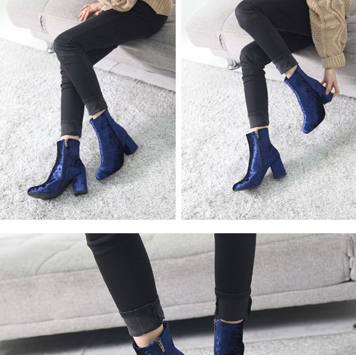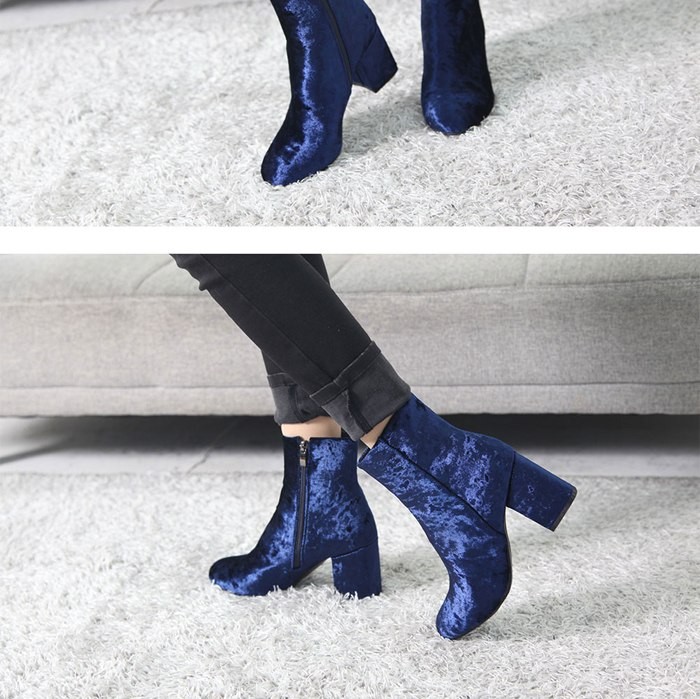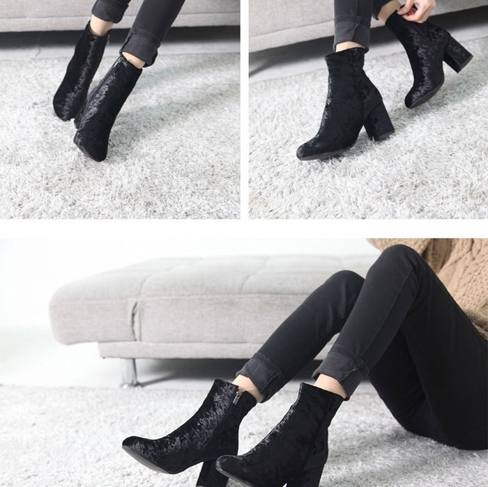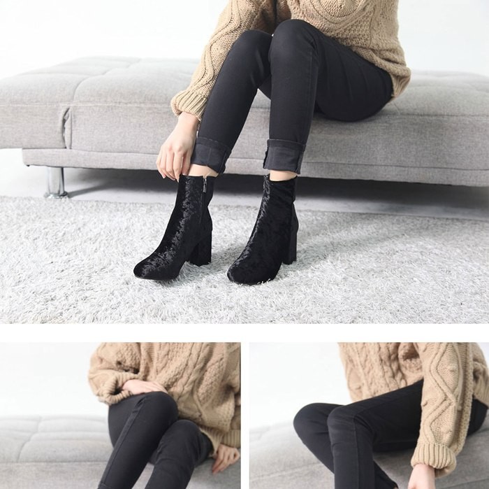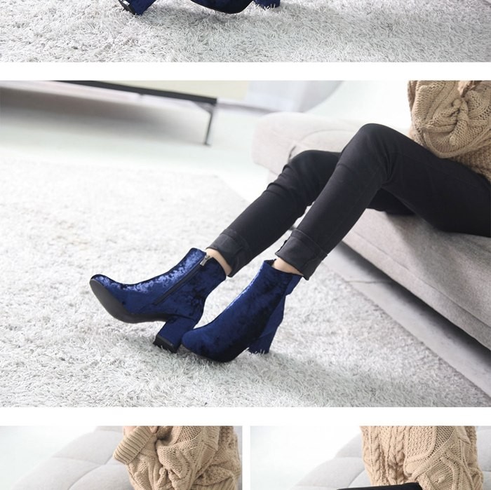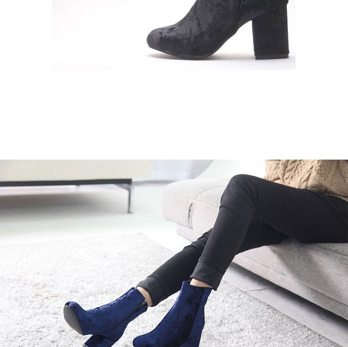 商品名:ブーティ レディース ブーティー ベルベット チャンキーヒール 太ヒール 2017 秋冬 ファッション 靴 婦人靴
