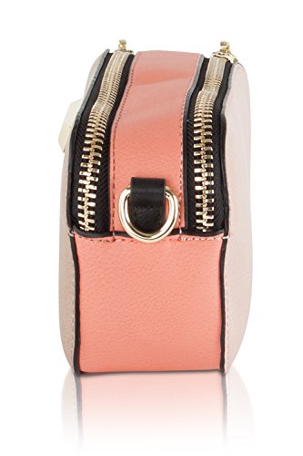 Synthetic leather colorblock exterior with signature logo details