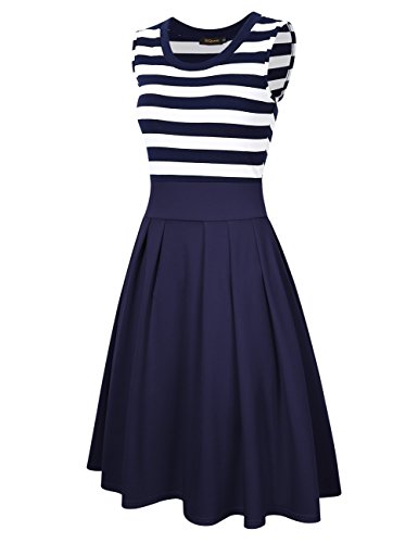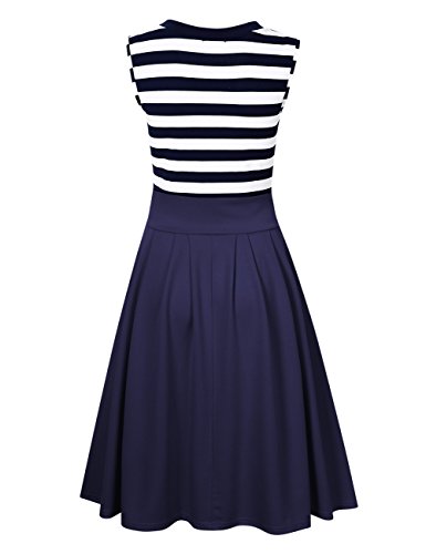 It is best choise whenever you want to look sexry carefree and perfect,definitely many compliments will come to you.Women's Swing Dress Navy Style Stripes Patchwok A-line Sleeveless Cocktail Dress