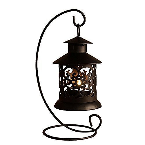 KUNGYO Euro Style Vintage Candle Holder Hollow Out Metal Candelabrum Gifts & Decor Decorative Candle Lanterns (Black)