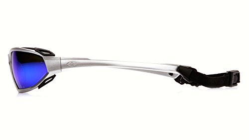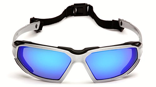Pyramex Highlander Safety Eyewear, Silver-Black Frame/Ice Blue Mirror Anti-Fog Lens