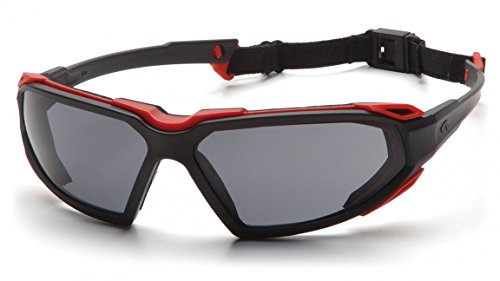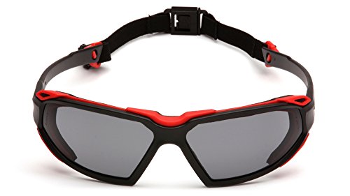Pyramex Highlander Safety Eyewear, Black-Red Frame/Gray Anti-Fog Lens