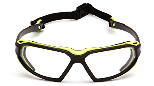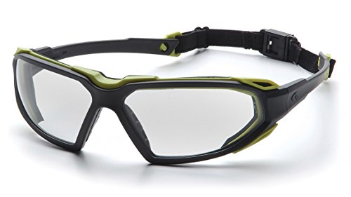 Pyramex Highlander Safety Eyewear, Black-Lime Frame/Clear Anti-Fog Lens