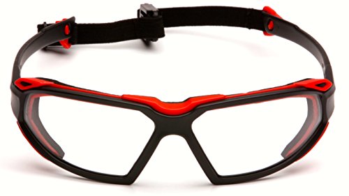 Pyramex Highlander Safety Eyewear, Black-Red Frame/Clear Anti-Fog Lens