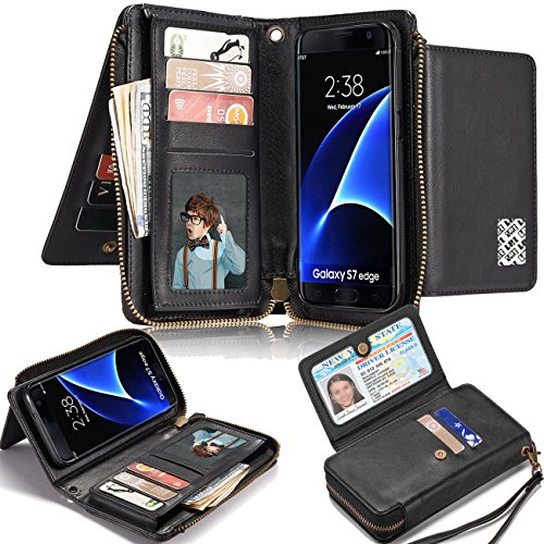 -. Title : Samsung S7 Edge Removable Case, LefRight Leather Wallet Flip 12 Credit Card Holder Handbag Wrist Strap
