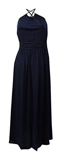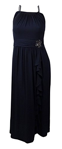 Studio : Nine West Publisher : Nine West Binding : Apparel Product Description Dress features full lining, halter neckline, crisscross spaghetti straps back, pleated georgette fabric, embellished detail with cascade side, full length skirt, and concealed side zipper closure. 0