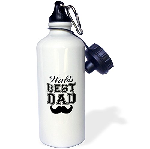 3dRose wb_151260_1 "Worlds best dad with funny black mustache-retro moustache vintage font-fathers day daddy gift" Sports Water Bottle, 21 oz, White