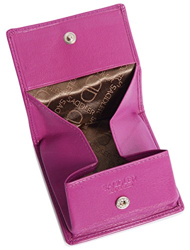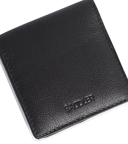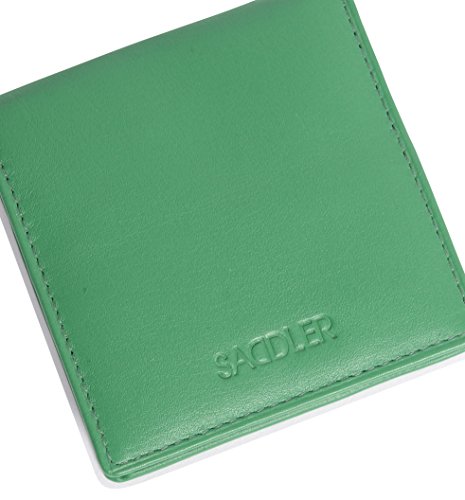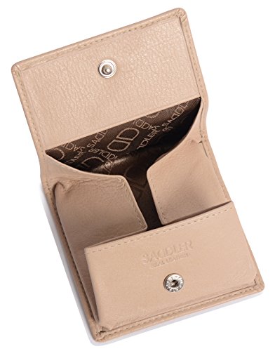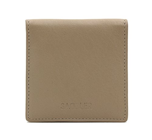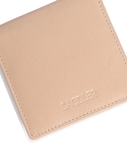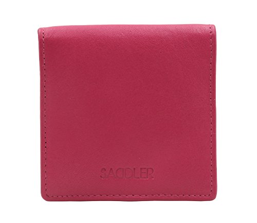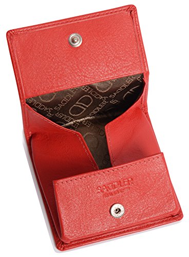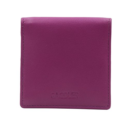 Product Description SADDLER is the quintessentially British Leather Goods Brand that traces its heritage back more than 25 years. Every SADDLER piece combines the finest leathers handcrafted by experienced artisans employing traditional leather skills with creative design and eye-catching colour that makes any SADDLER piece an ideal real leather gift. The SADDLER Essence Collection bears all the hallmarks of excellence across a comprehensive range of ladies accessories destined to impress those with the most discerning tastes. The outer flap of each piece is distinctively embossed with the SADDLER logo and the interior is lined with SADDLER monogrammed woven jacquard lining. High quality fittings are used to enhance the natural beauty of these full grain cowhide wallets and, as a finishing touch, the Saddler Essence range is delivered to you in its own innovative gift packaging. The top flap of this square tray purse is secured with a snap button, a gentle pull and it opens to reveal a roomy fully lined section for the storage of coins and small keys. There is a handy slip in pocket on the underside of the flap for stamps or other small items. Approximate Size: 8cm x 8cm x 1.5cm when closed and without packaging and weighs approximately 40 grams when empty. 0