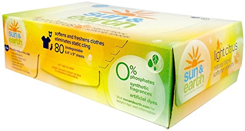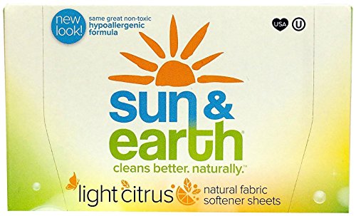 Sun Earth has combined the convenience of dryer sheets with common sense. Our fabric softener dryer sheets are hypoallergenic, nontoxic, biodegradable and safe to use. They make your clothes, sheets, and blankets feel extra soft and eliminate static cling. Available in "Fresh Citrus Scent" and "Unscented".
