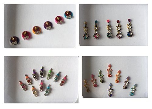4 Pack Multi Color Assorted Head Bindi Tattoo Indian Art Rhinestone Sticker