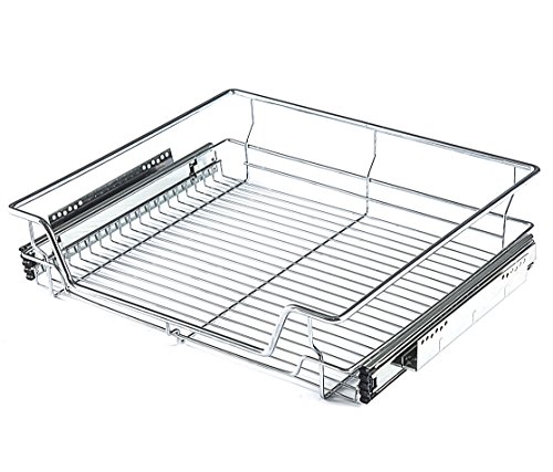 TIMOO Sliding Drawer Organizer Shelves for Cabinet 17.71"D X 27.65"W X 5.11"H Pull-Out Chrome Wire Basket