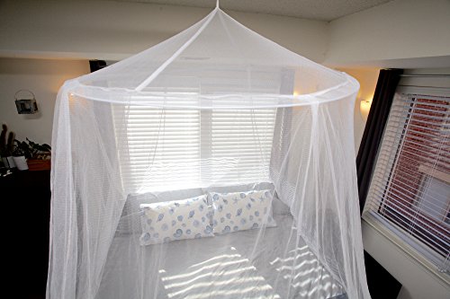 Perfect for SUMMER bug season and fun outdoor actvities! EXTRA WIDE and EXTRA TALL for KING and CALIFORNIA KING SIZE BEDS. The TOP HOOP diameter is 34 in, 8 INCHES WIDER than other nets, making for a very SPACIOUS FEELING underneath. BOTTOM CIRCUMFERENCE is 42 FT, easily covering both king and California king beds plus small bedside table. Bug CANOPY is 8.5 FT TALL.