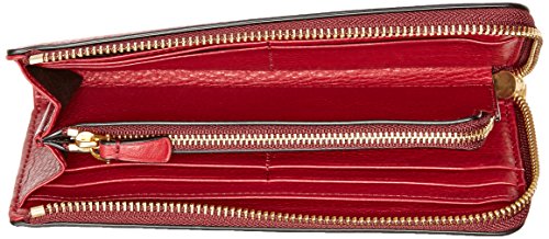 Ziparound wallet in pebbled texture featuring logos at front and zipper
