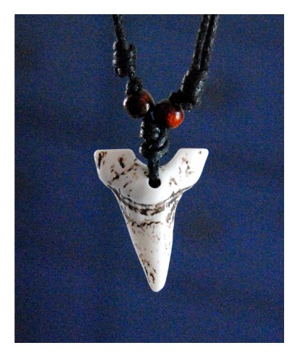 Binding : Toy Product Description Let's face it, shark tooth necklaces are freaking cool. What's not very cool is harvesting sharks and their teeth just so we can look awesome. These are authentic looking shark tooth necklaces made of ground up yak bone (I know, rrright?) and resin. Amazing deal on this cool faux shark tooth surfer necklaces. 0