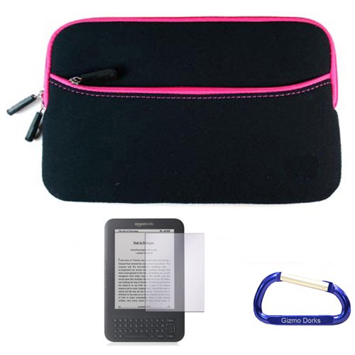 -. Title : Gizmo Dorks Zipper Sleeve Case (Black with Hot Pink Trim) with Screen Protector with Carabiner Key Chain for the Amazon Kindle Keyboard