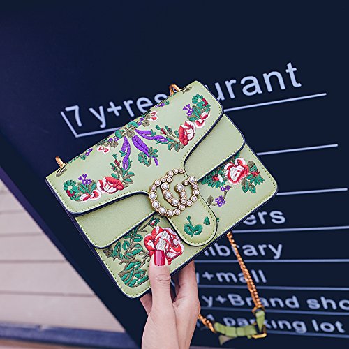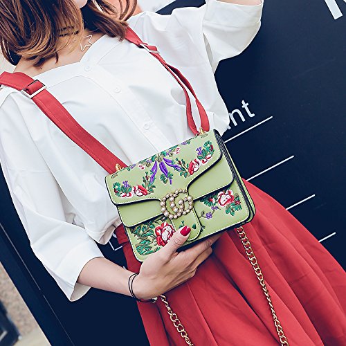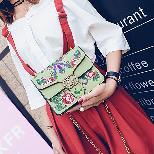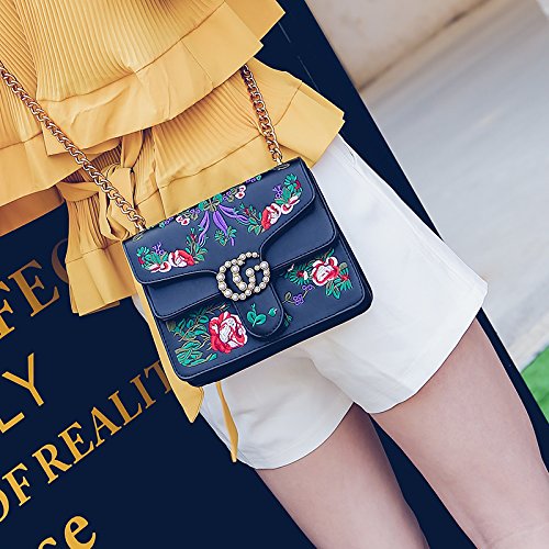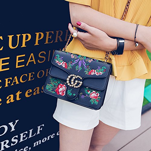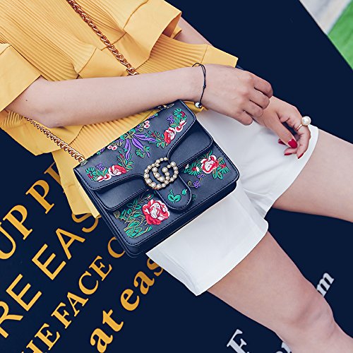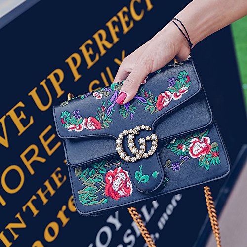 -. Title : Embroidered flowers Crossbody Bags For Women's Handbags Ladies Square Shoulder Bags handbags wiht pearl