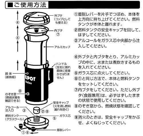It ignites the alcohol cooking stove at the bottom, fixing only the pot and easy to use, so it is also recommended for those not familiar with outdoor.