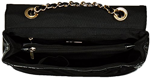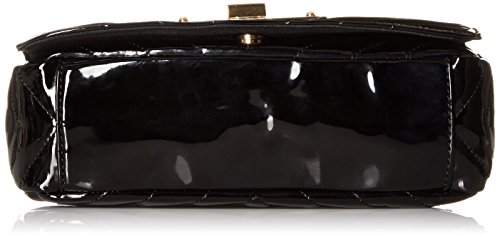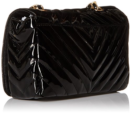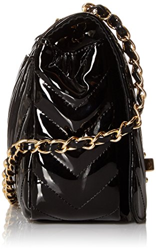 -. Feature : Glossy faux-leather cross-body bag with chevron quilting and gold-tone hardware / Chain-and-faux-leather cross-body strap