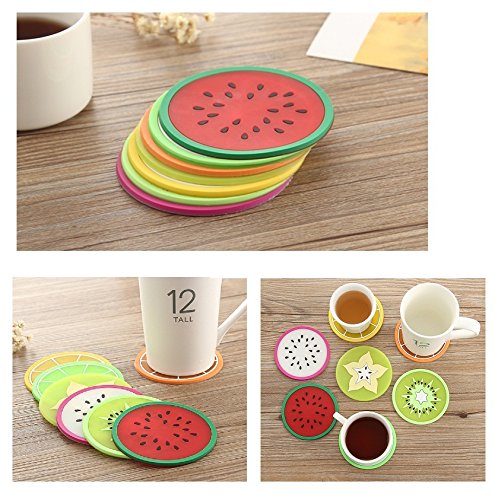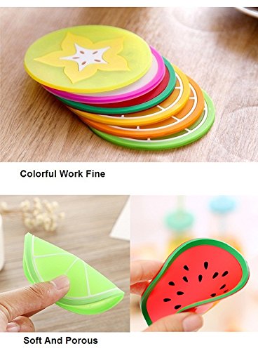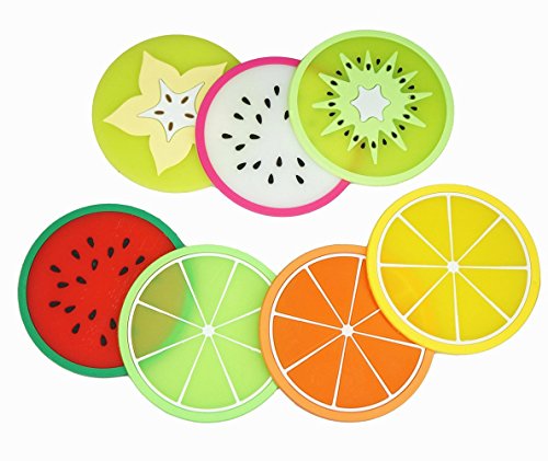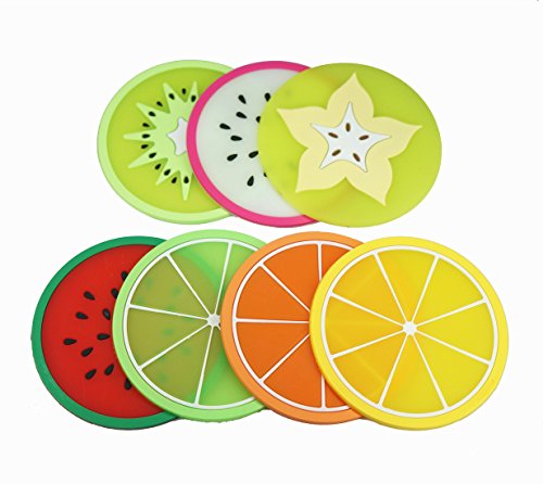 -. Title : LuckyStar365 7-Piece Non-Slip Silicone Fruit Drink Coasters