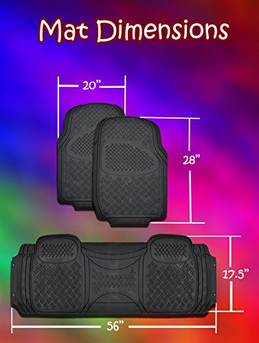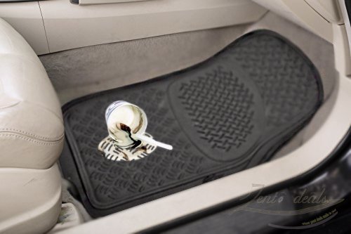 -. Brand : Zento Deals -. Color : Black -. EAN : 0716669915158 -. Feature : ★ LINEAR AND DIAGONAL RIDGES - The uniquely constructed linear and diagonal ridges are placed strategically to maximize the dirt trapping capabilities of the mat keeping your interior safe from damaging dust, dirt, dander and the wear your car faces from daily use. / ★ WITH ANTI-SLIP BACKING -To prevent sliding, keeping the mats securely in place and to increase your driving safety. / ★ TRIMMABLE - To better fit your vehicle and almost every vehicle in the market. / ★ HIGH QUALITY - They are constructed out of the highest quality of rubber polymer and its 100% Odorless. They are the strongest durable floor mats out there it will really last you long. / ★ MINIMAL MAINTENANCE - They are super easy to clean and install just take them out of your car and cleanse them with soap and water. Instantly they will be good as new keeping your car fresh and clean. -. IsAutographed : 0 -. IsMemorabilia : 0 -. Label : Zento Deals -. Manufacturer : Zento Deals -. Model : FM13 -. MPN : FM13 -. PackageQuantity : 3 -. PartNumber : FM13 -. ProductGroup : Automotive Parts and Accessories -. ProductTypeName : AUTO_ACCESSORY -. Publisher : Zento Deals -. Studio : Zento Deals -. Title : Zento Deals 3 Piece Black Universal Fit Premium Quality Full Rubber-All Weather Heavy Duty Vehicle Floor Mats -. UPC : 716669915158